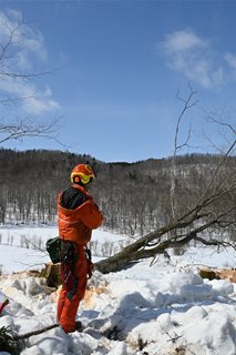 木を伐採して丸太を生産する業務になります。
