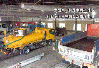 当社は創業50年を迎えた地域密着型の企業で、一般車両のみならずはたらくくるま、例えばトラックやバスといった大型車両の修理・整備業務や、車両塗装を主に行っています。