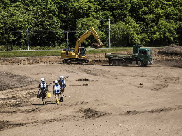 現場写真④ 重機による土砂敷き均し作業です