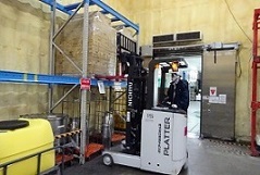 冷蔵庫内の様子です。フォークリフトで製品を移動します。