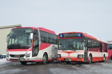 都市間バスと路線バス、敷地内に自社整備工場もあり。