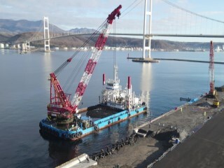 室蘭港祝津絵鞆岸壁 自社300t起重機船