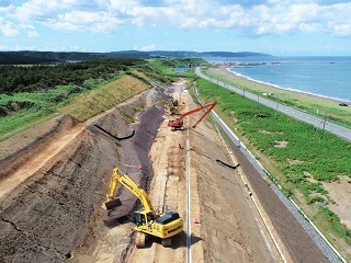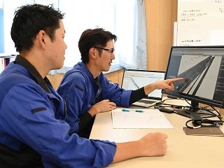 土木部の現場は壮大です!すぐそばに絶景がある、そんな現場で仲間と共に地図に残るような大きな仕事をします。国道や漁港を造る工事、道路の除排雪業務など、様々な現場を経験できる環境があり、その現場を管理するのが仕事です。測量や工事写真撮影などの屋外作業のほか、書類作成やPCでの図面作成など、意外と室内作業も多いのが現場管理の仕事です!