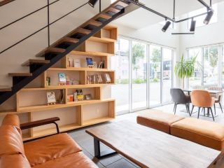 モダンでぬくもり溢れる弊社事務所TONTSUKIは東月寒の昔からの愛称が由来。#奨学金返還支援制度#フリーアドレス制度 #コーヒーお茶お代わり自由 #吹き抜け #大きな窓 #ソファー